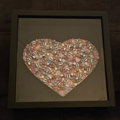 Kom je eigen kunst maken. Je gaat het hart versieren met beads en kralen in alle denkbare kleuren. Je kunt kiezen uit verschillende kleuren achtergrond en kleur hart (keuze naar voorraad) in je lijst ( 25cm x 25cm ).